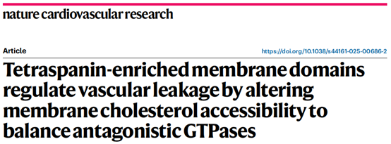 该研究揭示了内皮细胞中的四跨膜蛋白CD82通过调控质膜(PM)上“可及胆固醇”(Accessible Cholesterol, AC)的分布与转运,失衡拮抗性小GTP酶信号通路(抑制Cdc42活性/维持RhoA活性),从而促进炎症性血管渗漏的机制。CD82通过与胆固醇转运蛋白ORP2相互作用,形成富集膜结构域(TEMD),维持AC在质膜的富集;AC的积累进一步限制Cdc42激活因子FARP1的膜锚定,同时促进RhoA抑制因子Rnd3的膜解离,最终导致内皮屏障破坏。研究还发现,他汀类药物(如辛伐他汀)或ORP抑制剂(OSW-1)通过降低AC水平,抑制该通路并减轻血管渗漏,为炎症性疾病(如脓毒症、COVID-19)提供了新的治疗靶点。