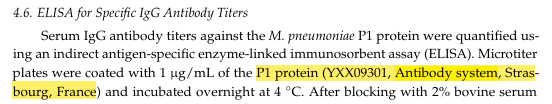 文章引用了AntibodySystemRecombinant Mycoplasma pneumoniae mgpA/Adhesin P1 Protein, N-His(货号YXX09301)用于ELISA实验:以1 μg/mL包被微孔板,检测免疫小鼠血清中P1特异性IgG抗体水平。结果显示,mRNA-SP+P1组小鼠抗体滴度随免疫次数递增,三剂后达10⁶–10⁷,显著高于空LNP对照(p < 0.001)。因此该P1蛋白可作为可靠包被抗原,验证疫苗诱导的体液免疫效果。