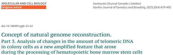 Concept of natural genome reconstruction. Part 3. Analysis of changes in the amount of telomeric DNA in colony cells as a new amplified feature that arose during the processing of hematopoietic bone marrow stem cells